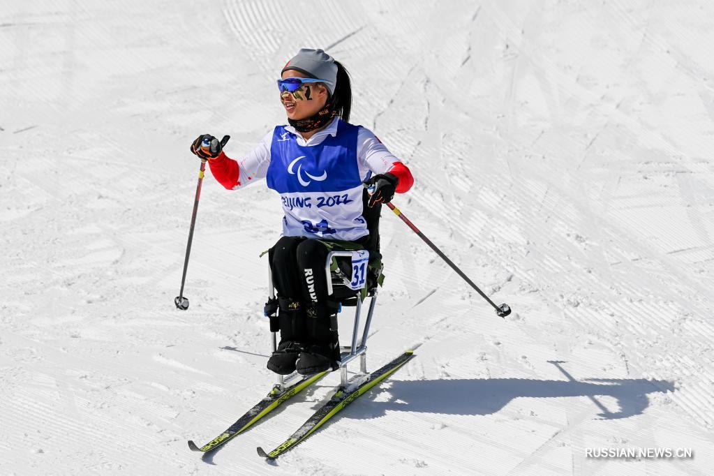 Китайская лыжница Ян Хунцюн завоевала золото в женской гонке на длинную дистанцию в классе "сидя" на зимних Паралимпийских играх-2022