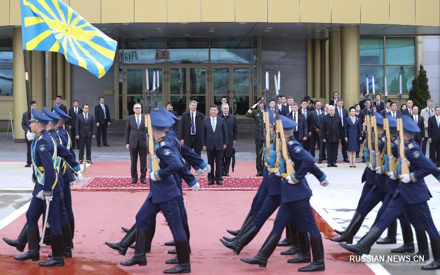 Си Цзиньпин принял участие в церемонии приветствия. Военный оркестр исполнил государственные гимны двух стран. Си Цзиньпин провел смотр почетного караула и церемониального марша.