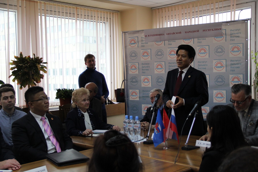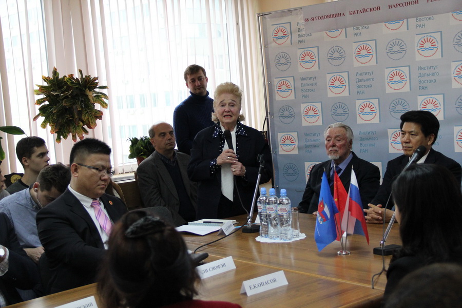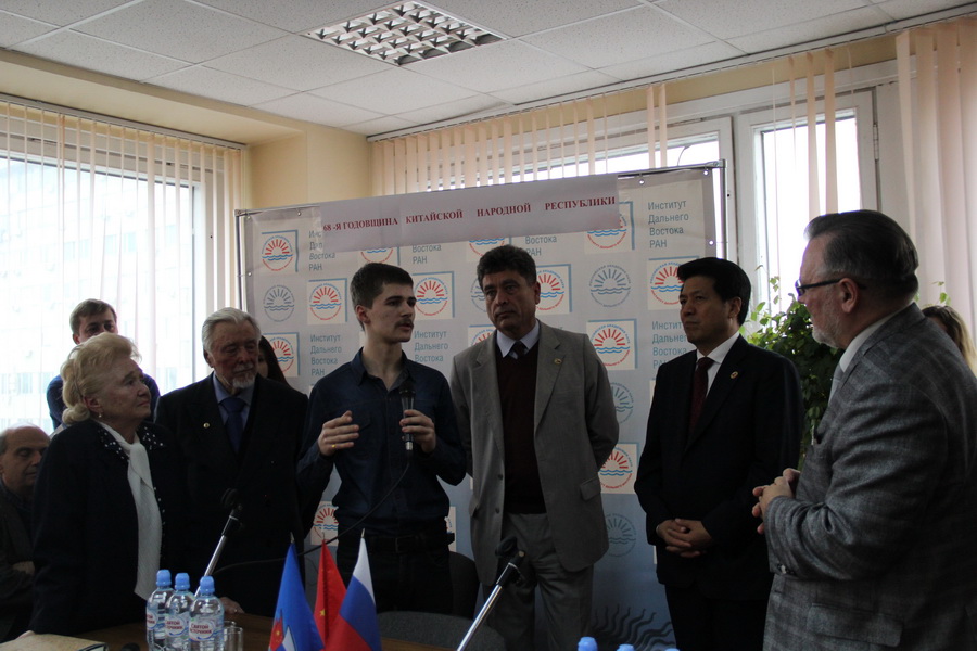 Во время заседания «Круглого стола» зал Ученого Совета ИДВ РАН был переполнен, отметить годовщину образования КНР и установления российско-китайских дипломатических отношений пришли не только заслуженные деятели российского китаеведения, но и молодое поколение — студенты вузов и даже школьники, изучающие китайский язык.