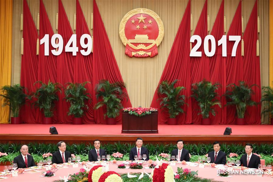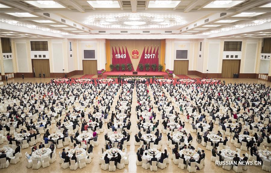 30 сентября -- Госсовет КНР сегодня здесь устроил торжественный прием по случаю 68-летней годовщины образования КНР. На приеме присутствовали председатель КНР Си Цзиньпин, премьер Госсовета КНР Ли Кэцян и другие высшие руководители Китая . (Синьхуа)