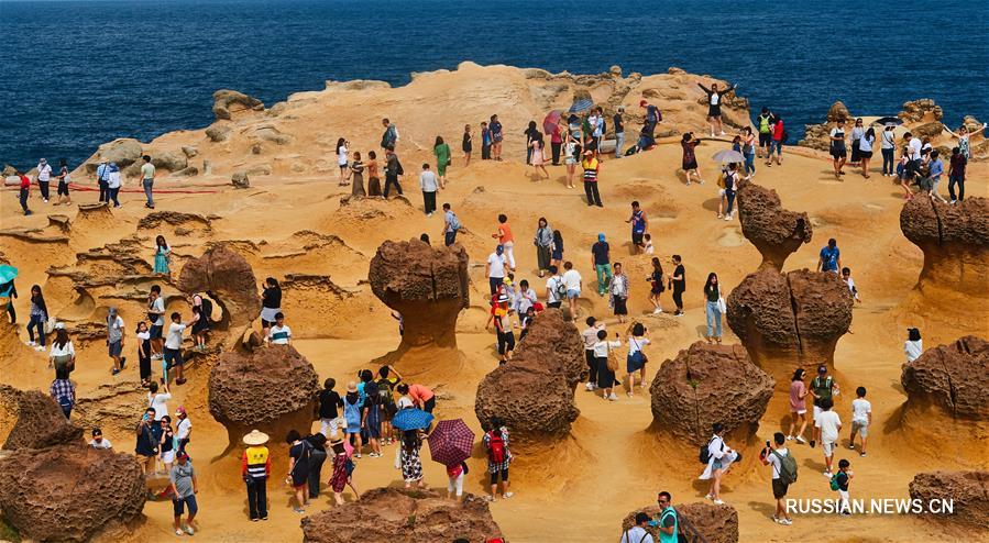 3 октября-- На фото -- причудливые скалы в геологическом парке Елю в городе Синьбэй на Тайване. (Синьхуа)