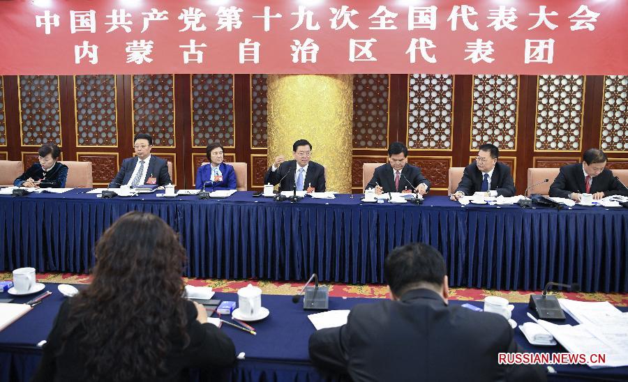19 октября-- Чжан Дэцзян в среду во второй половине дня в рамках проходящего в Пекине 19-го съезда КПК присутствовал на групповом заседании делегации автономного района Внутренняя Монголия /Северный Китай/, посвященном обсуждению доклада, с которым выступил Си Цзиньпин на церемонии открытия 19-го съезда КПК.