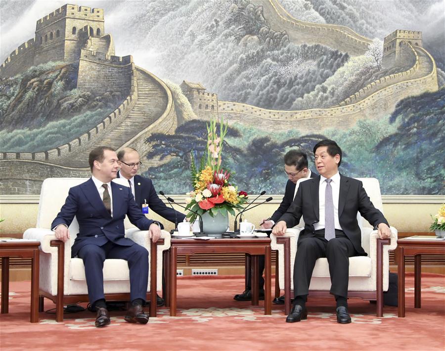 Председатель ПК ВСНП Ли Чжаньшу в среду в Доме народных собраний в Пекине провел встречу с премьер-министром РФ Дмитрием Медведевым