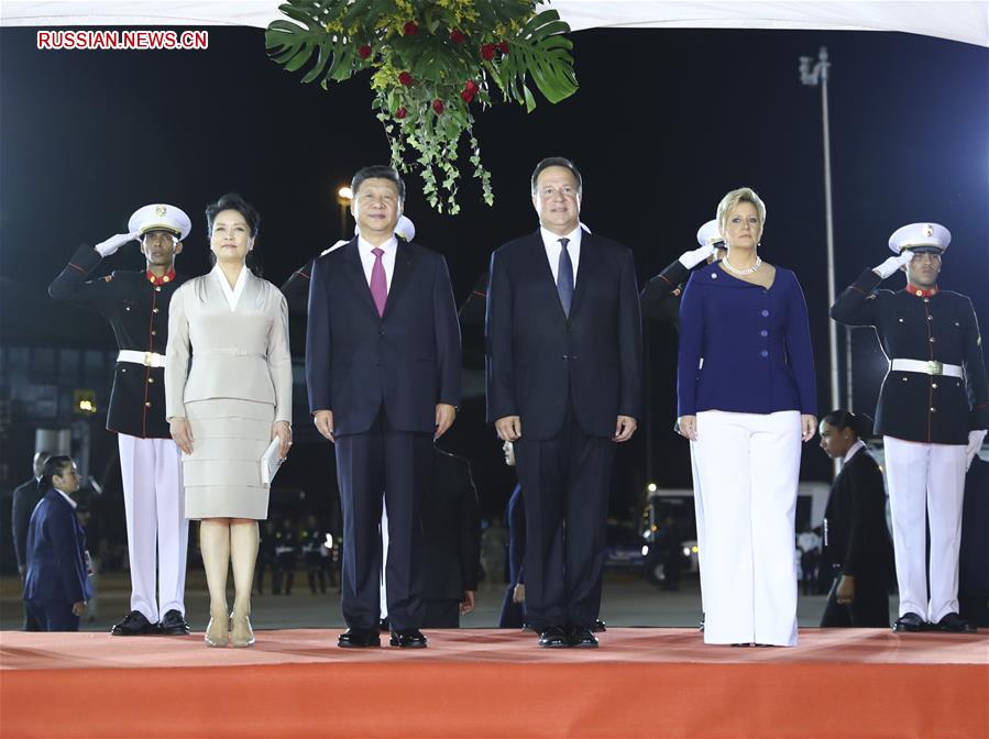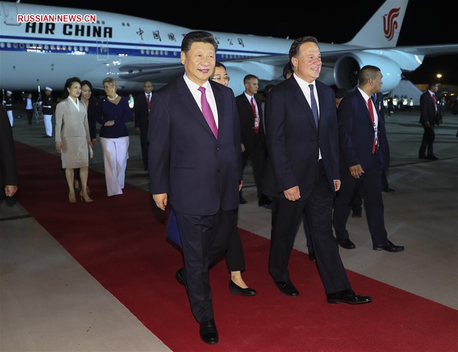 Спецрейс главы китайского государства приземлился в международном аэропорту Панамы около 20:00 по местному времени. Президент Панамы Хуан Карлос Варела организовал торжественную церемонию встречи.