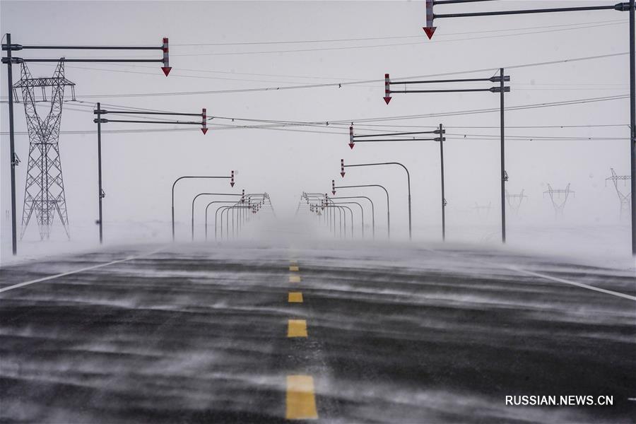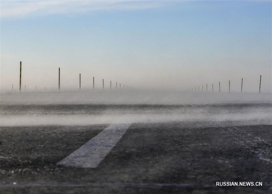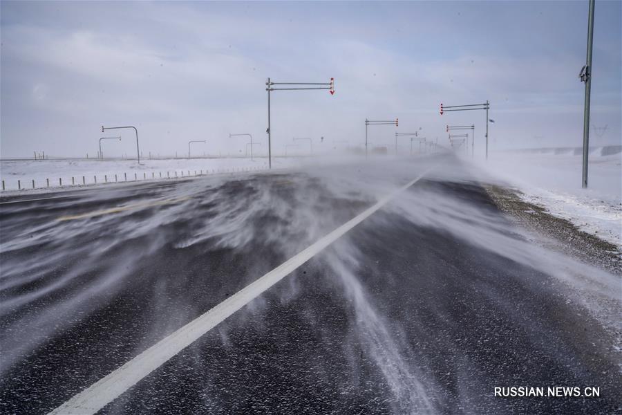 Зимнее шоссе в зоне ветров Майтас