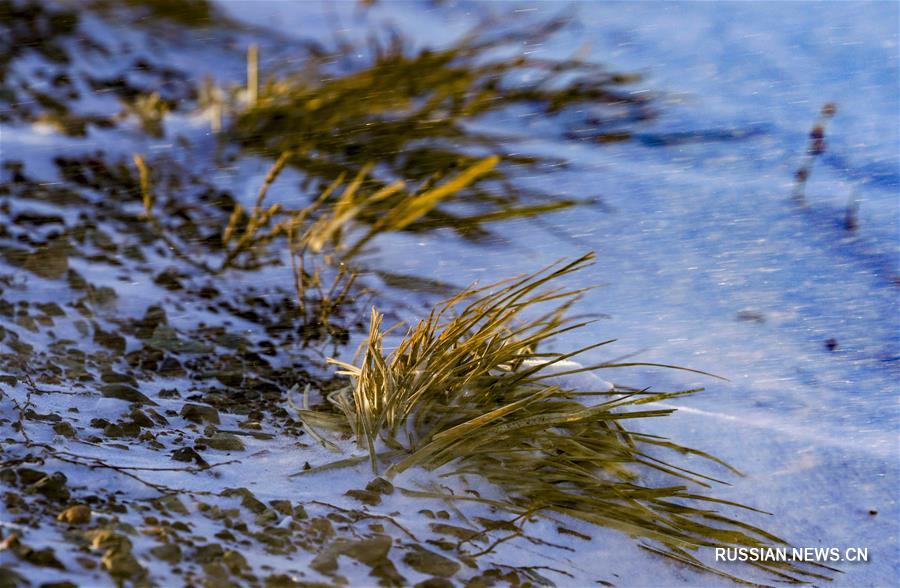 Белые лебеди переживают морозы на водохранилище Янхэ в провинции Хэбэй