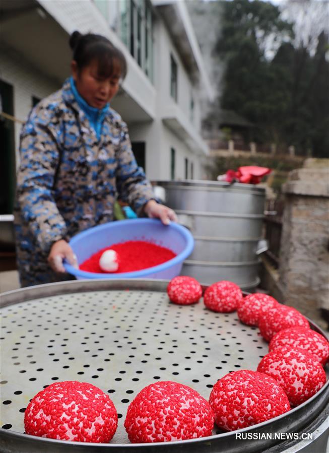 Праздничные паровые булочки "хунба" из провинции Гуйчжоу