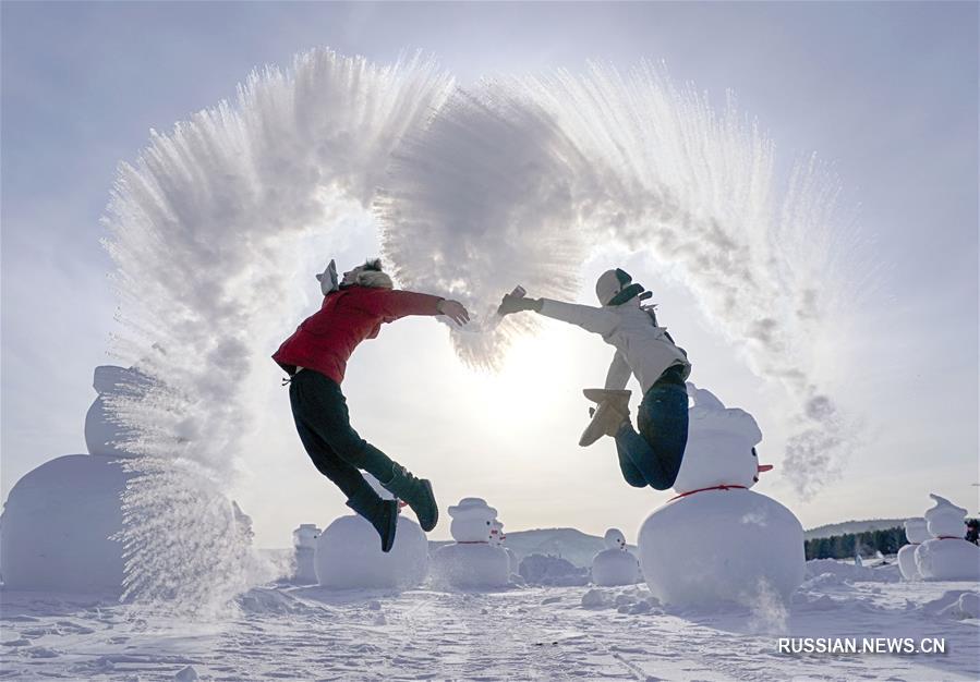 "Ледяные фейерверки" в уезде Мохэ на севере Китая