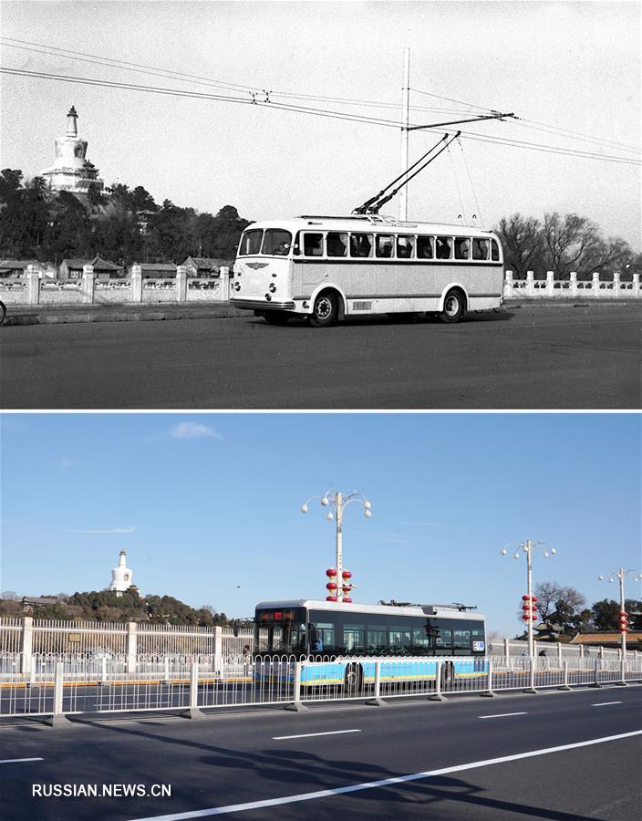 На фото сверху от 26 февраля 1957 года -- тестовая поездка по первому троллейбусному маршруту (Синьхуа);
