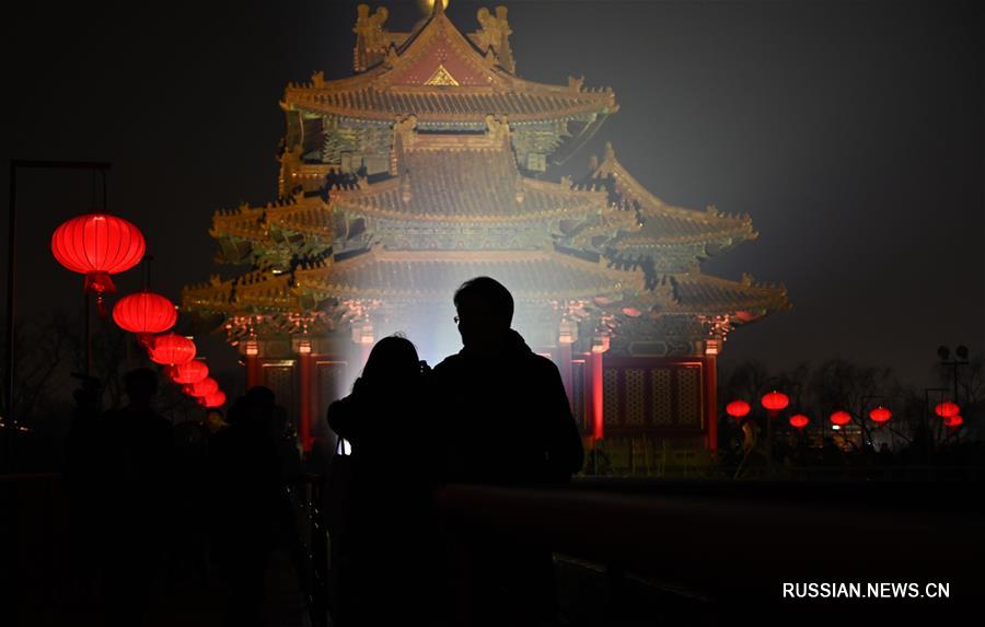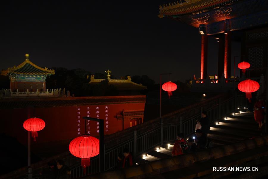 19 февраля-- Музей Гугун в центре Пекина - бывший императорский дворец, также известный как запретный город - увеличил время работы древнего комплекса, чтобы посетители смогли впервые отпраздновать здесь Праздник фонарей в темное время суток.