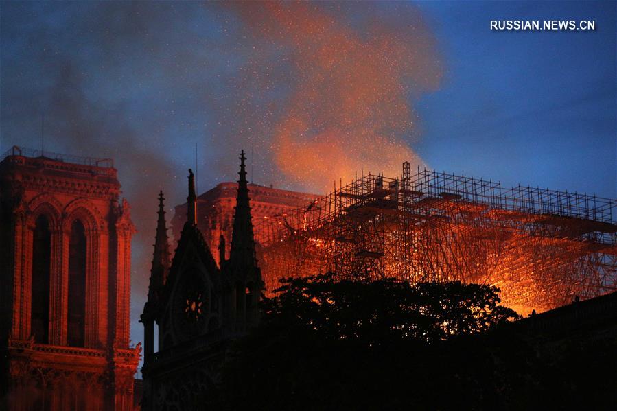 Официальный представитель Нотр-Дама заявил, что возгорание было обнаружено около 18:50 по местному времени. Как сообщает корр. Синьхуа с места происшествия, к горящему Нотр-Даму прибыло большое число пожарных и полицейских машин. Над собором барражируют спасательные вертолеты. В небо поднялся столб густого дыма, который виден с расстояния нескольких километров.