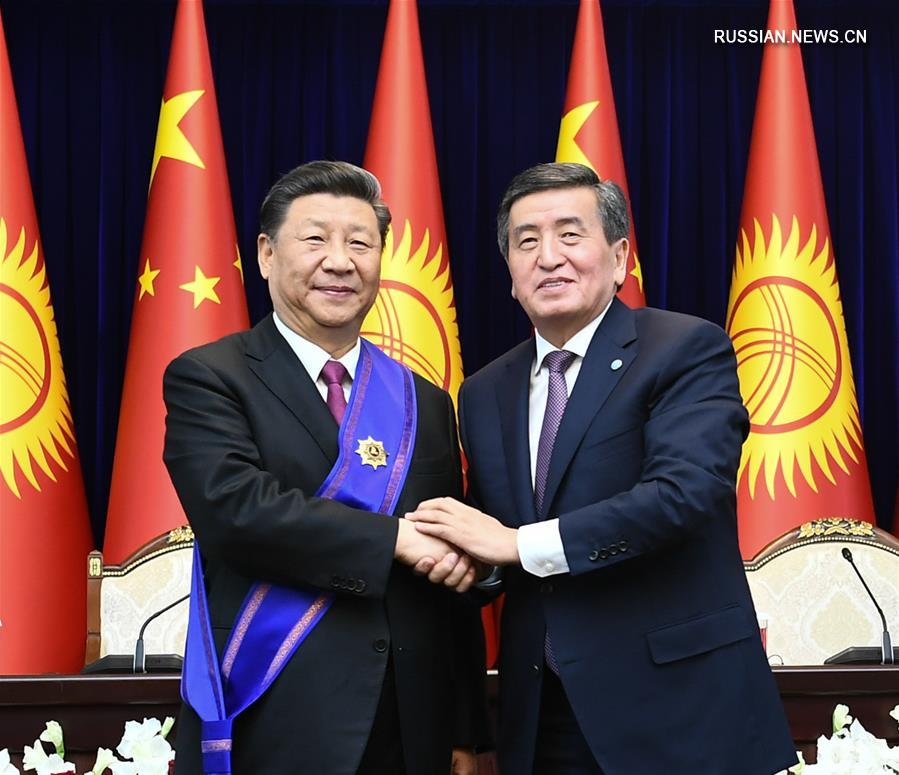Бишкек, 13 июня /Синьхуа/ -- Председатель КНР Си Цзиньпин в четверг на церемонии в Бишкеке принял от президента Кыргызстана Сооронбая Жээнбекова орден "Манас" первой степени.