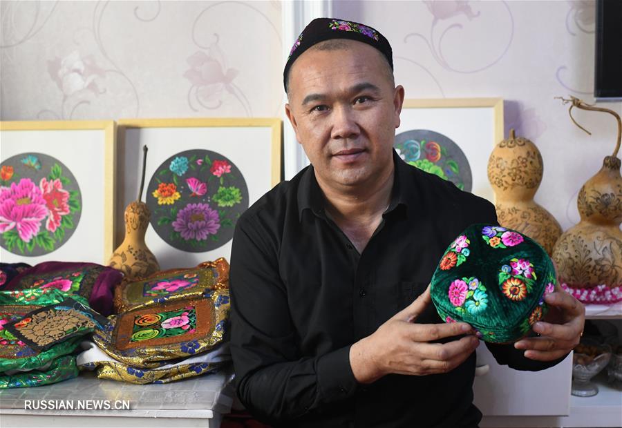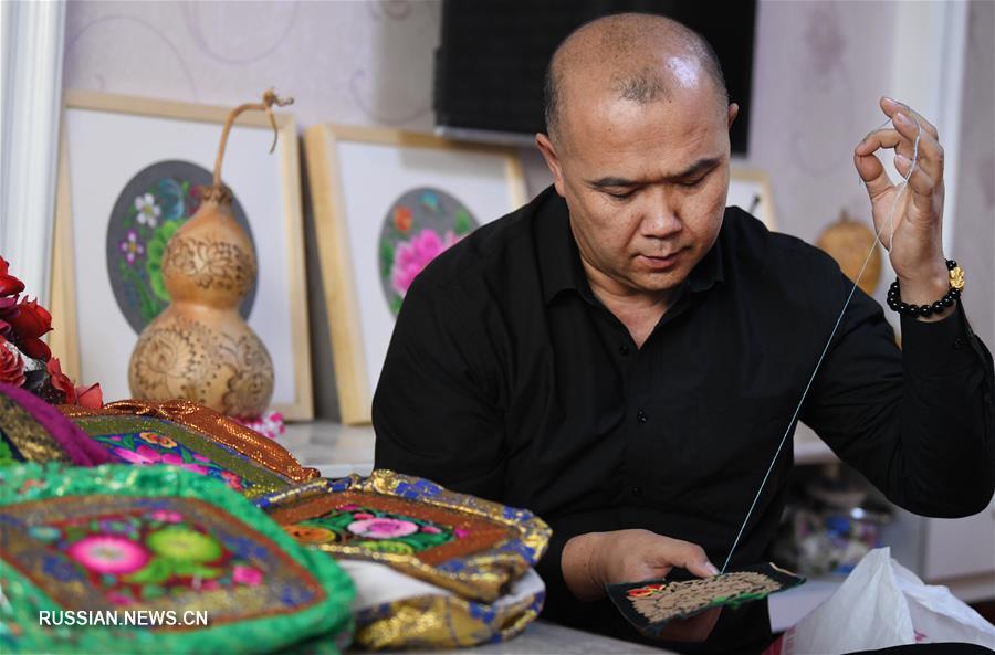 В небольшой деревне городского уезда Хами Синьцзян-Уйгурского автономного района /Северо-Западный Китай/ живет Кадир Рахман, который страстно увлечен вышиванием -- одним из традиционных рукоделий Хами. Мать и старшая сестра Кадира -- довольно известные местные вышивальщицы, а он сам уже в 7 лет научился вышивать простые цветочные узоры. Когда Кадиру было 35 лет, его старшая сестра скончалась, и он решил стать продолжателем семейного ремесла. В настоящее время Кадир Рахман не только имеет стабильный заработок, но и организовал профессиональную бригаду вышивальщиц из более чем сотни жительниц окрестных деревень, а также разработал 300 с лишним наименований новой продукции с национальной вышивкой, включая диванные подушки, тюбетейки и платья ципао. (Синьхуа)