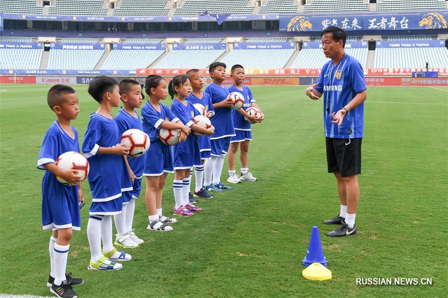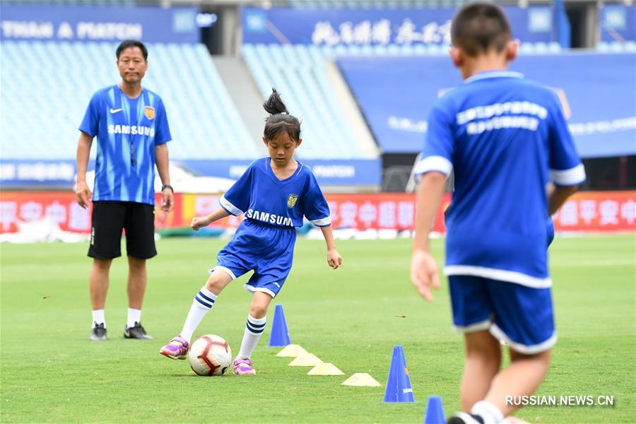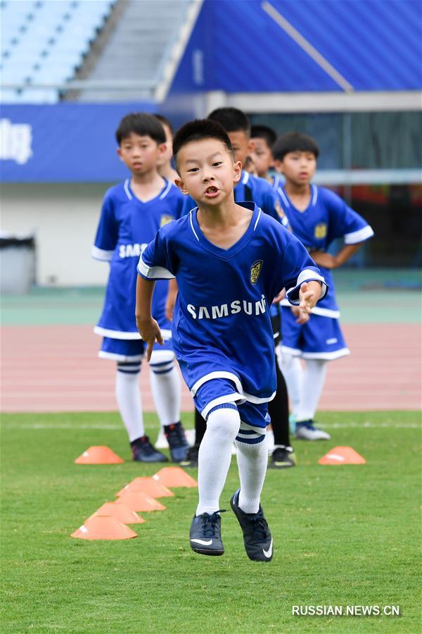 23 июля -- В последние дни по случаю летних каникул более 20 школьников из разных районов Китая в рамках мероприятия "Футбольное время Самаранча - футбольный класс Samsung" собрались на стадионе Олимпийского центра в Нанкине /пров. Цзянсу, Восточный Китай/ для приобретения базовых навыков игры в футбол. (Синьхуа)