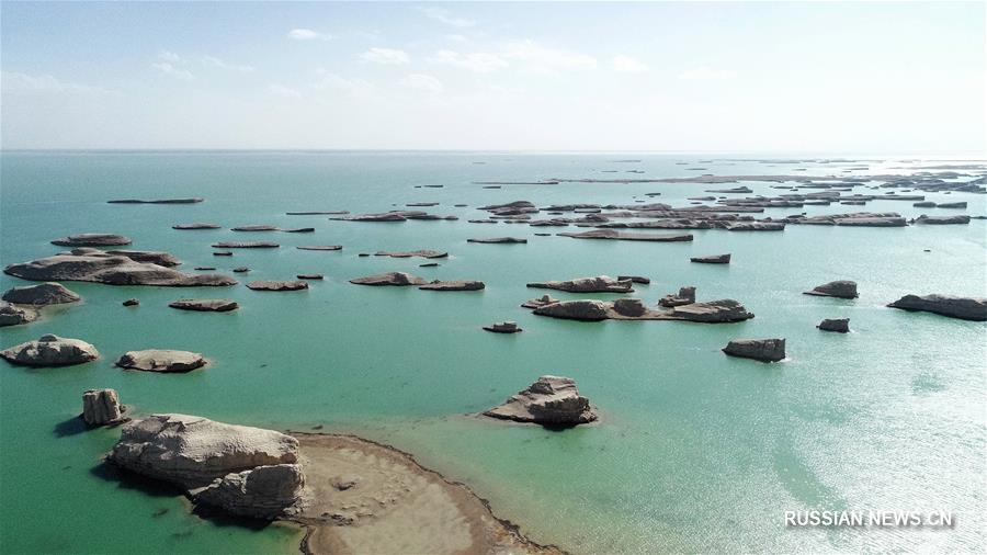 Пейзажи заболоченных угодий соленого озера Чархан