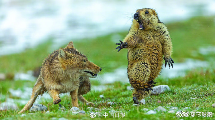 В среду завершился конкурс фотографий дикой природы 2019 года в Музее естественной истории в Лондоне. Фото работа китайского фотографа Бао Юнцина «Мгновенье» отличается от 48 000 работ из более чем 100 стран и была избрана «Фотографией дикой природы 2019 года». Фотография была сделана в Цинхай-тибетском нагорье. По сообщению Би-би-си, фотограф очень долго наблюдал за животных прежде чем выбрать момент и сделать этот снимок. Сурок подумал, что лиса уже ушла и медленно выбрался из пещеры, но внезапно обнаружил, что лиса была рядом. В этот момент сурок от ужаса разинул рот, словно закричал. (Жэньминь жибао)