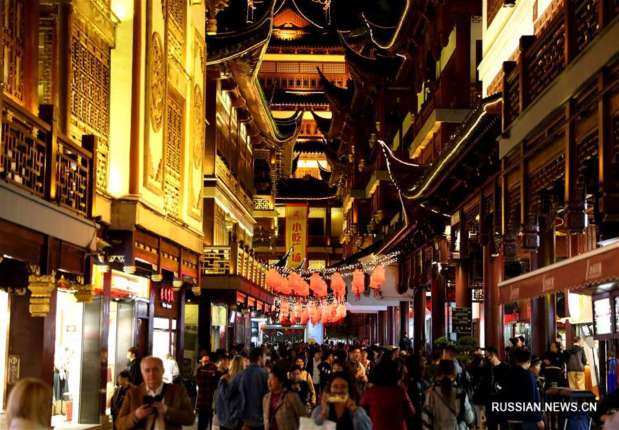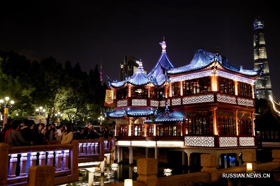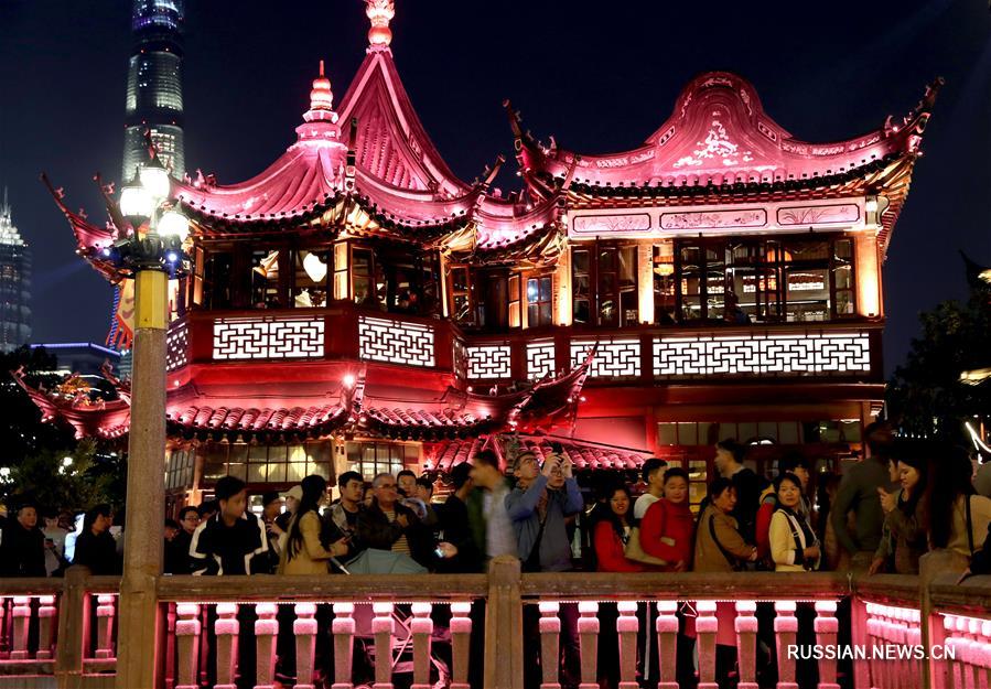 27 октября вечером в Шанхае зажглись огни "Выставки тысячи царских фонарей", организованной парком Юйюань и компанией Tencent. (Синьхуа)