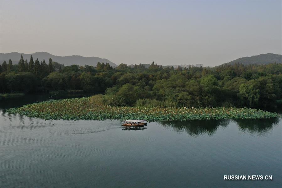 На закате очаровательные пейзажи озера Сиху в городе Ханчжоу /провинция Чжэцзян, Восточный Китай/ выглядят особенно живописно поздней осенью. (Синьхуа)