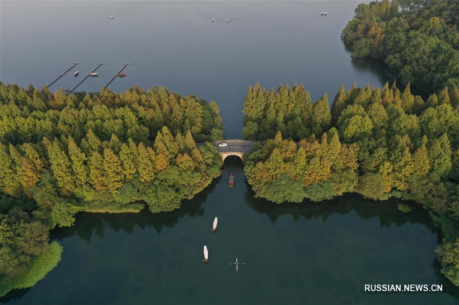Прекрасный осенний пейзаж на озере Сиху