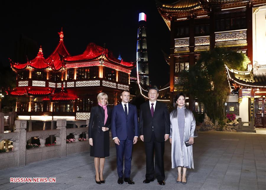 Шанхай, 5 ноября /Синьхуа/ -- Председатель КНР Си Цзиньпин вместе с супругой Пэн Лиюань сегодня здесь встретились с президентом Франции Эммануэлем Макроном и его супругой Бриджит Макрон.