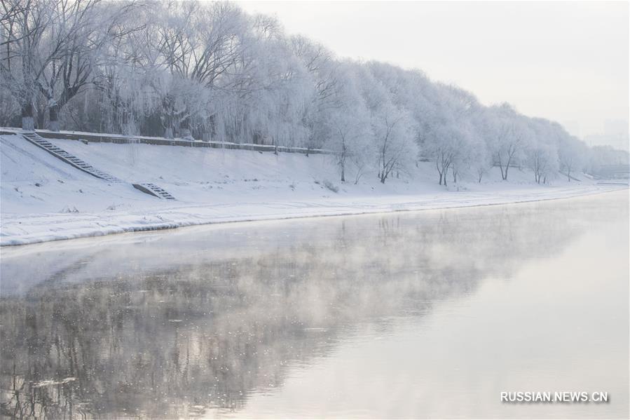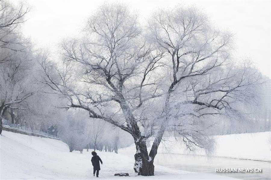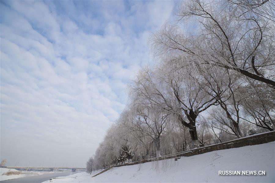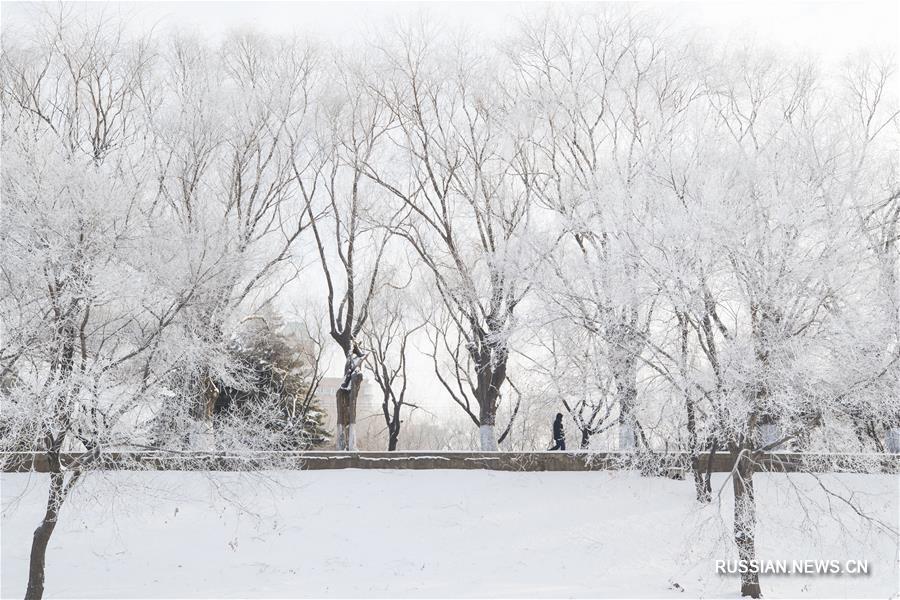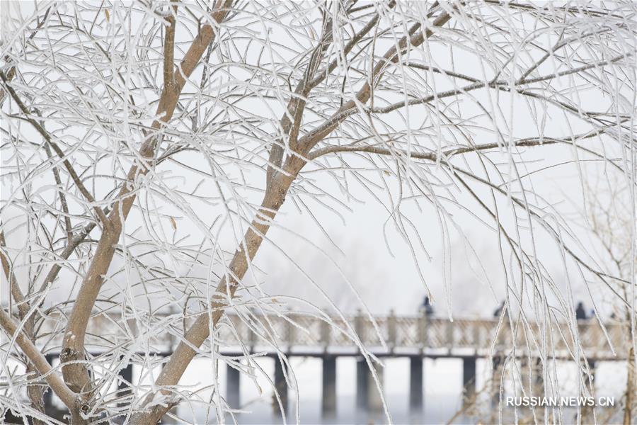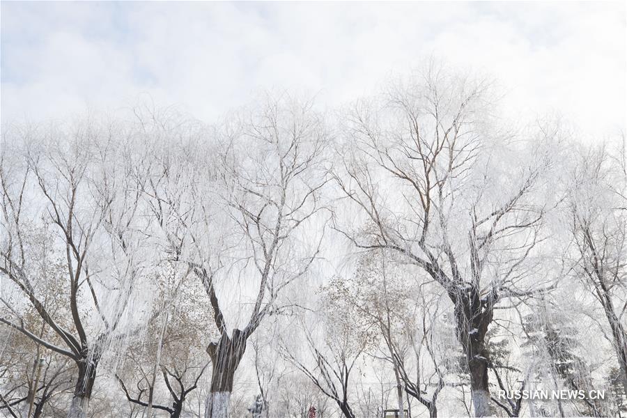 На фото -- изящная изморозь на деревьях в ландшафтном парке Хэцзягоу в районе Даоли городского округа Харбин провинции Хэйлунцзян /Северо-Восточный Китай/.(Синьхуа)