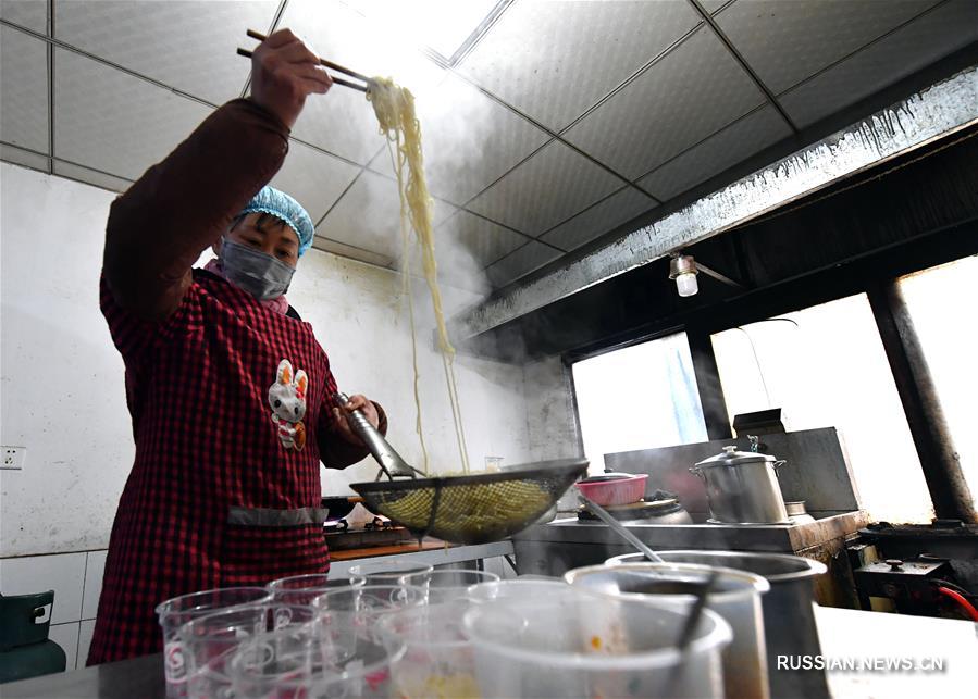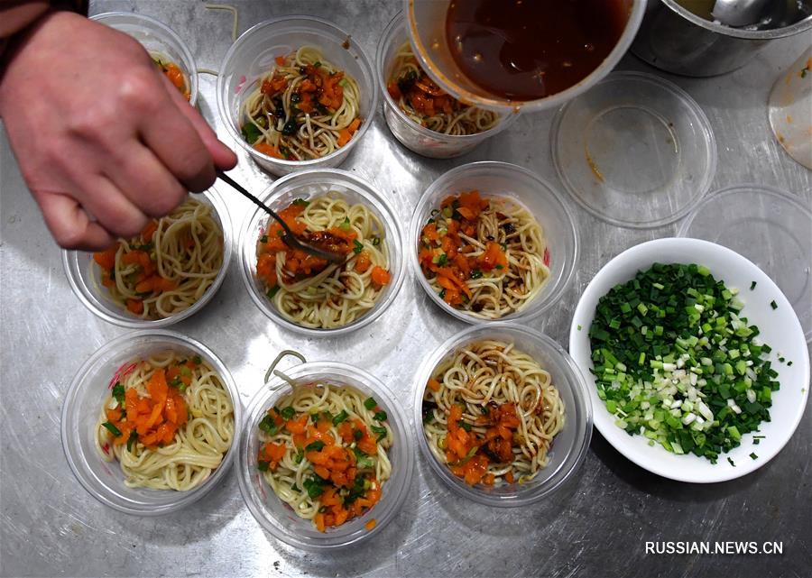 Синьян /пров. Хэнань/, 5 февраля /Синьхуа/ -- После вспышки пневмонии, вызванной коронавирусом нового типа, 9 жителей провинции Хубэй были помещены под карантинное наблюдение в бизнес-отель "Худун" в районе Шихэ города Синьян провинции Хэнань /Центральный Китай/. В этот период работники отеля стали для них и разносчиками еды, и психотерапевтами. Горячая сухая лапша -- знаменитая закуска города Ухань. Сегодня отель специально приготовил это блюдо на завтрак для изолированных хубэйцев.