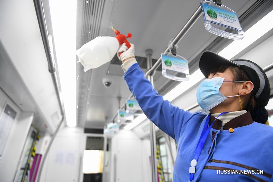 Метрополитен Чанша /провинция Хунань, Центральный Китай/ усиливает противоэпидемические меры, чтобы обеспечить пассажирам максимальную безопасность: сотрудники дезинфицируют помещения и вагоны, при входе в метро пассажирам измеряют температуру, на станциях открываются дополнительные пункты осмотра для пассажиров с лихорадкой, плакаты и аудиообъявления напоминают о необходимости носить маски.(Синьхуа)