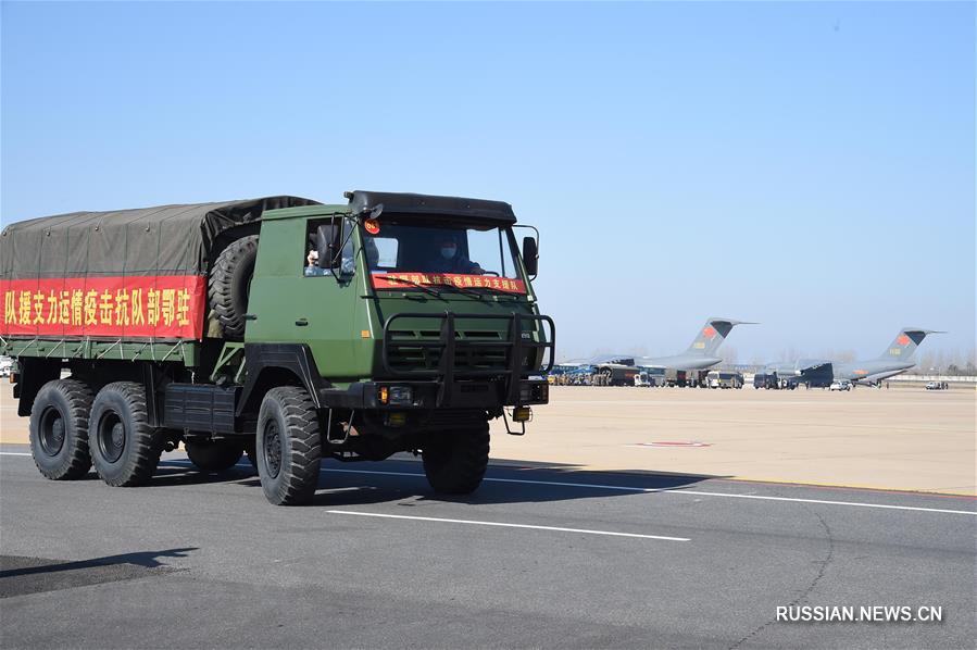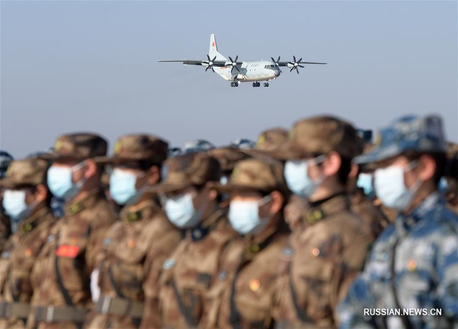 В понедельник восемь транспортных самолетов Военно-воздушных сил Народно-освободительной армии /ВВС НОАК/ доставили 676 военных медицинских работников и средства медицинского назначения в административный центр провинции Хубэй /Центральный Китай/, город Ухань, который является эпицентром эпидемии пневмонии, вызванной коронавирусом нового типа. (Синьхуа)