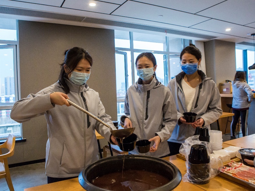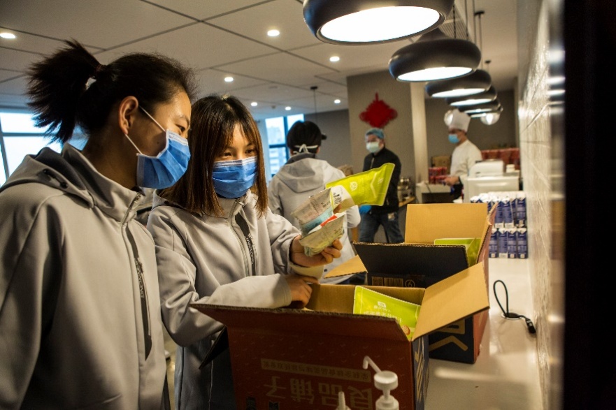 Ежедневное питание медицинской бригады в основном упаковано в коробках. Сотрудники местной администрации преодолели проблемы, в том числе транспортировку грузов, и обеспечили медицинскую команду продуктами питания. Несмотря на то, что сейчас в гостинице работает мало людей, они все-таки готовят медикам кашу и лапшу утром и вечером. Закуски и товары для жизни, подаренные людьми из разных слоев общества, также радуют каждого члена бригады.