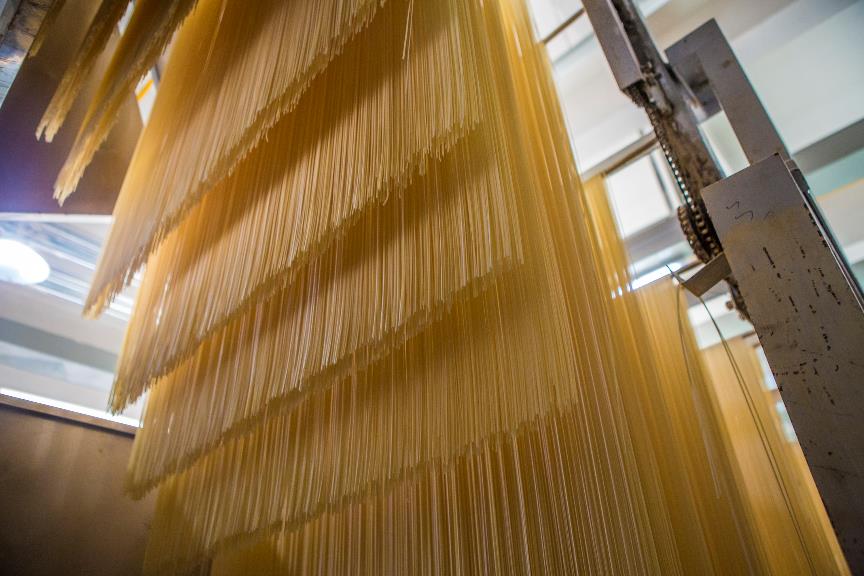 На складе компании журналист увидел аккуратно сложенные штабелями упаковки лапши и муки. Как предприятие, занимающееся поставкой и производством необходимых для жизни товаров, компания «Кэ Минь» постепенно возобновляет производство с 1 марта, гарантируя производственную мощность от 80 до 90 тонн в сутки.