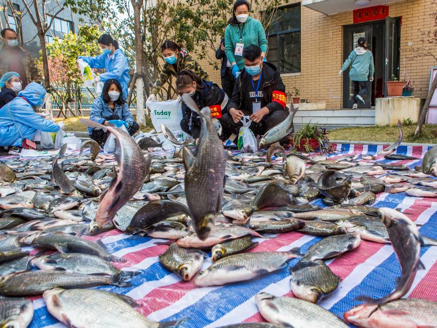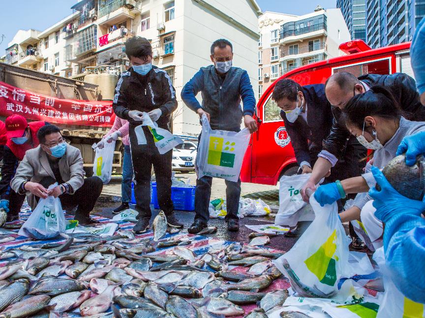 20 марта АО уханьская логистическая компания цепи обслуживания замороженных продуктов «Цзюйли Динсин» подарила 750 кг рыбы жителям микрорайона Юаньбо, расположенного на улице Цзиньиньху района Дунсиху города Ухань. Работники микрорайона и сотрудники компании вместе разделили и упаковали свежую рыбу, которая была доставлена на дом нуждающимся в помощи жителям микрорайона (людям пожилого возраста, малоимущим семьям, а также семьям, которым назначено пособие).