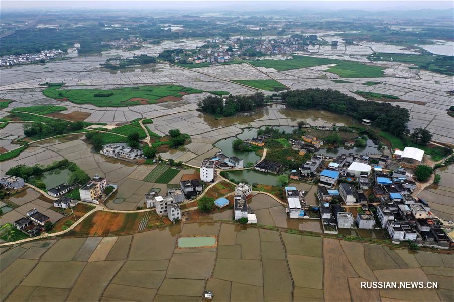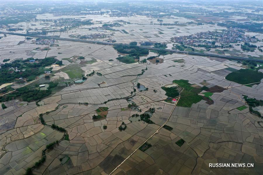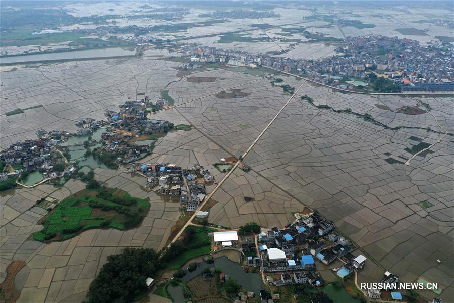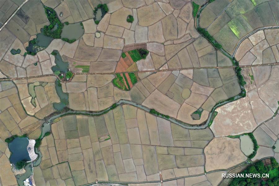 5 апреля -- заливные рисовые поля в поселке Гула уезда Биньян Гуанси-Чжуанского автономного района /Южный Китай/ в период весенней вспашки. (Синьхуа)