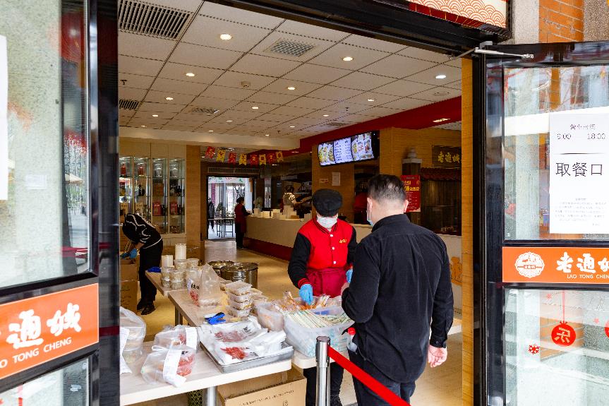 3 апреля, филиал ресторана «Лаотунчэн», расположенный на улице Цзицин г. Ухань, снова работает после двухмесячного перерыва.