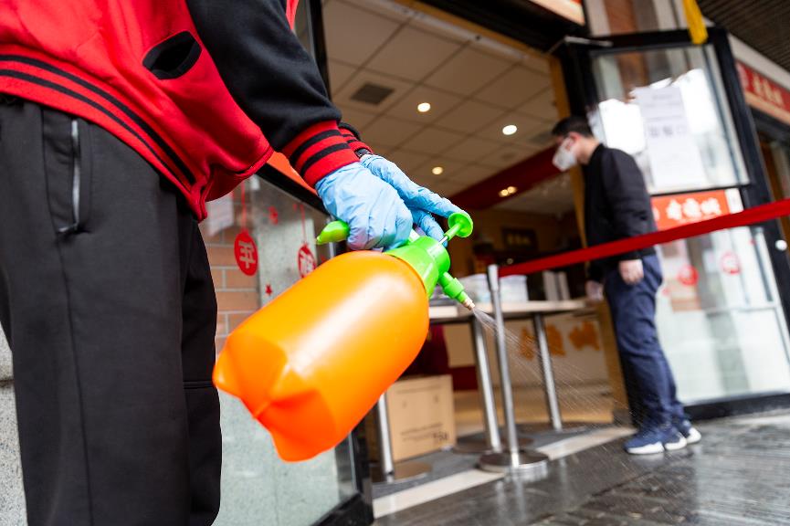 В конце марта Цзян Хан с коллегами начал готовиться к возобновлению работы, провел дезинфекцию помещения ресторана, купил защитные средства, подал заявку в соответствующие органы для возобновления работы в онлайн-режиме и прошел проверку уличного комитета и других отделов.