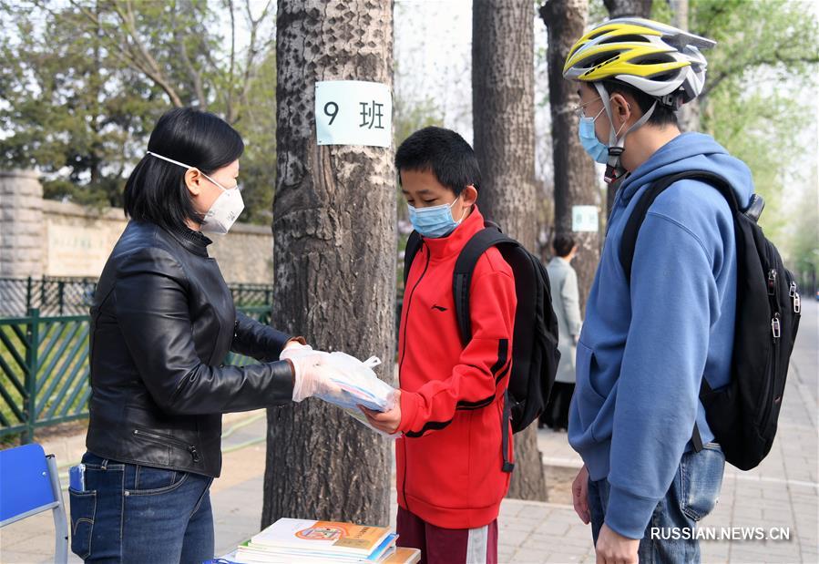 Пекин, 8 апреля /Синьхуа/ -- В начальных и средних школах района Хайдянь Пекина недавно при соблюдении необходимых противоэпидемических мер прошла выдача учебных пособий. С 13 апреля у учеников столичных школ начнутся онлайн-занятия.