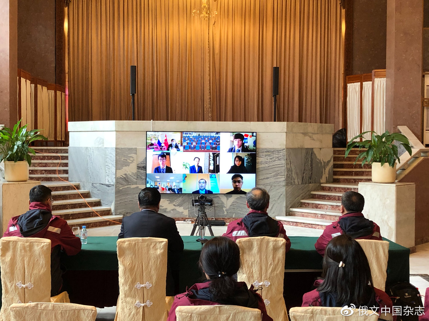 12 апреля в посольстве КНР в РФ группа медицинских экспертов, направленная правительством КНР в Россию для оказания помощи в борьбе с COVID-19, провела видеоконференцию с китайцами, живущими в России, с китайскими предпринимателями, сотрудниками китайских предприятий и студентами, обучающимися в России. В мероприятии приняли участие посол КНР в РФ Чжан Ханьхуэй, глава медицинской группы, заместитель председателя НПКСК провинции Хэйлунцзян Хао Хуэйлун, все члены группы медицинских экспертов, дипломаты посольства, китайские предприниматели и студенты.