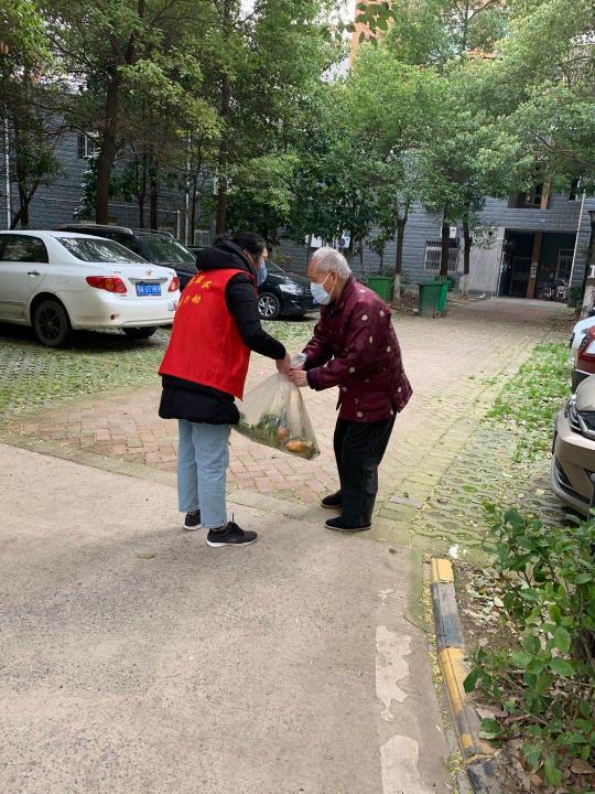 Ян И передает жителям микрорайона продукты.