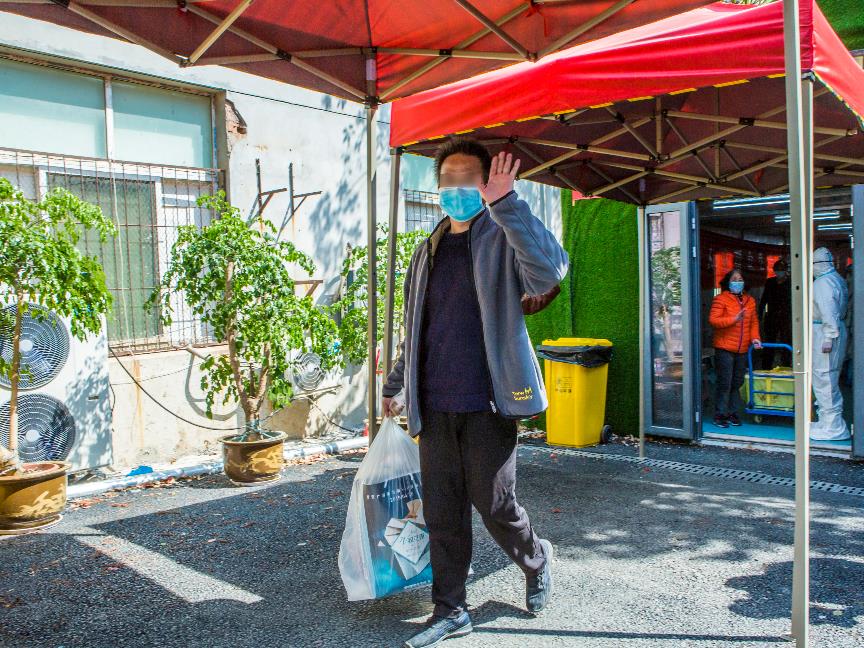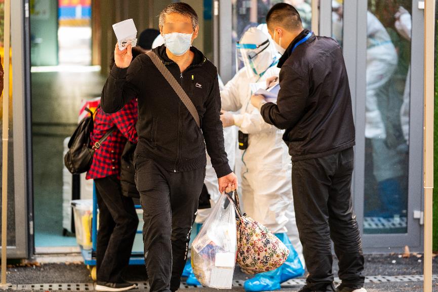 Утро 13 апреля, центр реабилитации «Чанцзян Синьчэн» г. Ухань. Из центра реабилитации вышли выздоровевшие пациенты, ранее находившиеся здесь на карантине и под медицинским наблюдением.
