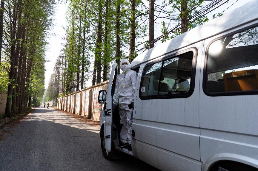 13 апреля, у входа центра реабилитации «Чанцзян Синьчэнь» стояли машины, предназначенные для вывоза выздоровевших людей домой.