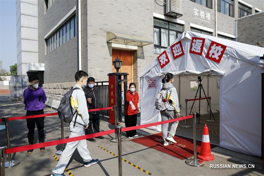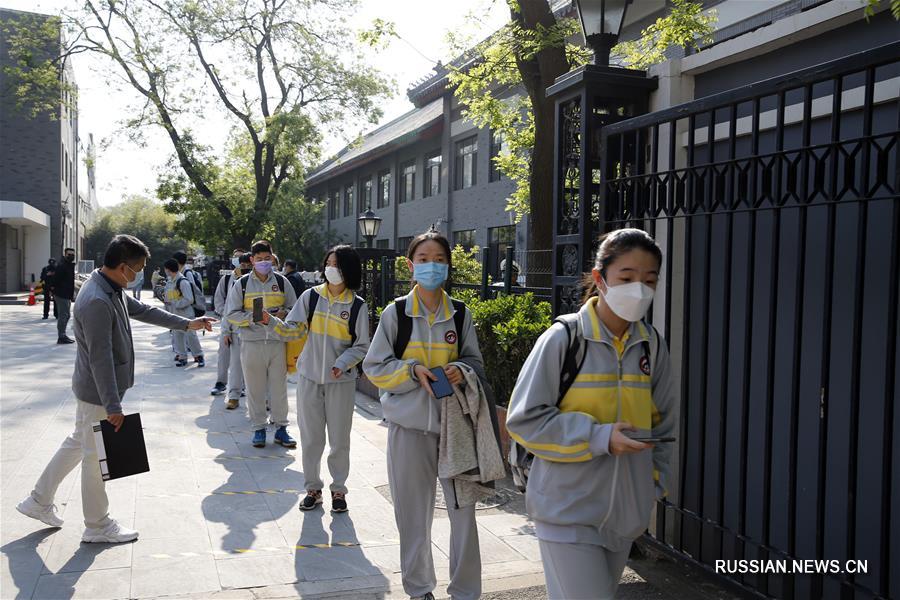 Пекин, 27 апреля /Синьхуа/ -- Почти 50 тыс. учеников выпускных классов средней школы высшей ступени вернулись сегодня к занятиям в китайской столице.