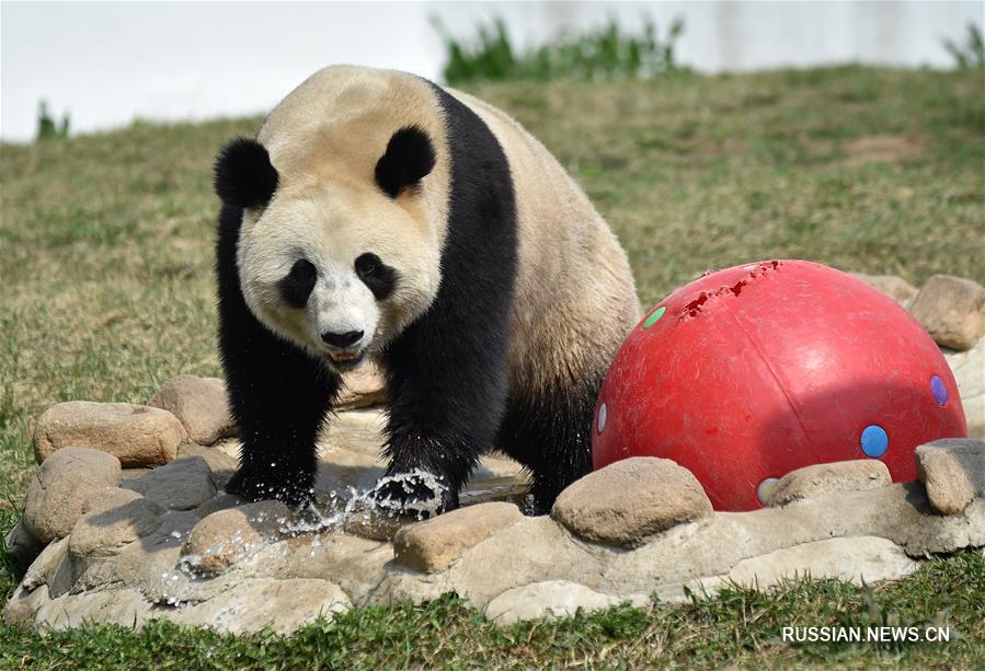 Чанчунь, 1 мая /Синьхуа/ -- В каникулы по случаю Дня труда многие посетители пришли полюбоваться на больших панд-самок по кличке "Чусинь" и "Муюнь" в павильоне больших панд Цзилиньского парка маньчжурских тигров в городе Чанчунь /Северо-Восточный Китай/.