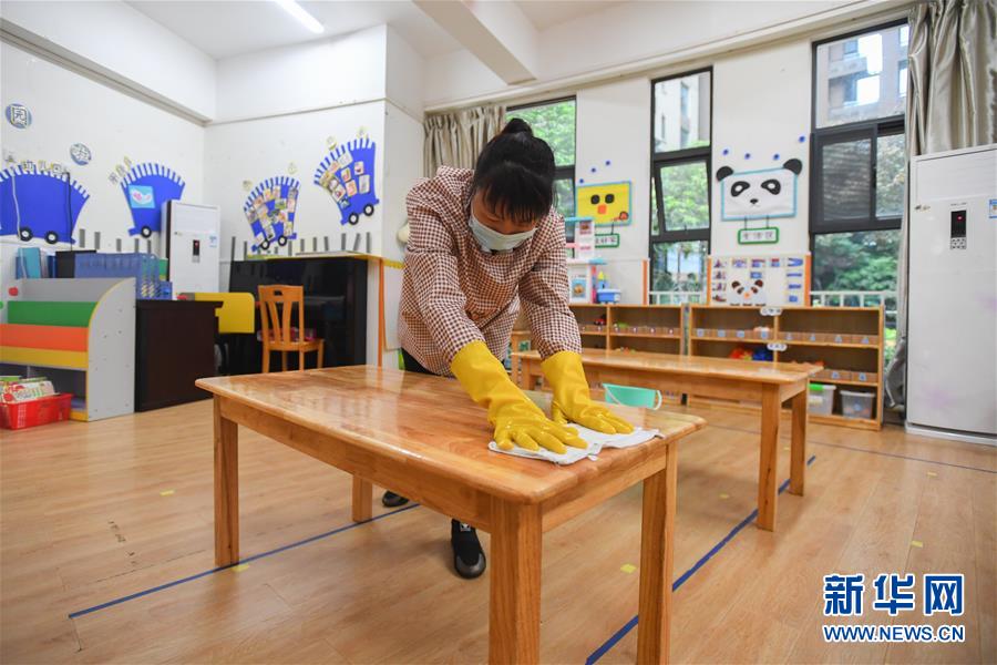 На днях в детских садах в городе Чанша /провинция Хунань, Центральный Китай/ началась подготовка к открытию. В детских садах работники отмывают и дезинфицируют помещения, расставляют мебель и учебный инвентарь, а в некоторых -- даже проводят "репетицию" работы с соблюдением противоэпидемических мер.