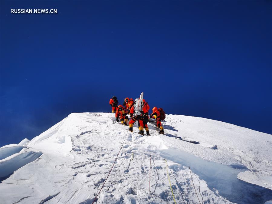 Китайская команда геодезистов в среду утром достигла вершины горы Джомолунгма, завершив ключевой этап в миссии повторного измерения высоты высочайшего в мире горного пика. Потом китайские геодезисты наладили на вершине пика геодезический сигнал для измерения высоты горы. Ведь именно в этот день 45 лет назад, 27 мая 1975 года, китайские геодезисты впервые поставили геодезический сигнал на пике горы Джомолунгма и успешно измерили высоту горы, которая была официально определена как 8848,13 м. (Синьхуа)