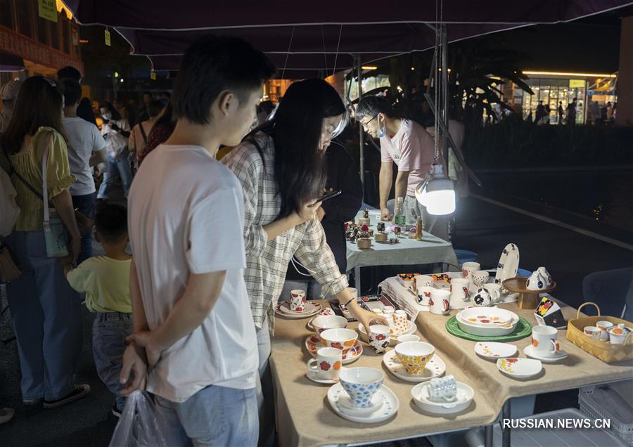 Вместе с возобновлением производственной деятельности в городе Цзиндэчжэне /провинция Цзянси, Восточный Китай/ постепенно восстанавливается в прежних объемах торговля на рынке Таосичуань, куда приходит немало горожан и туристов. (Синьхуа)