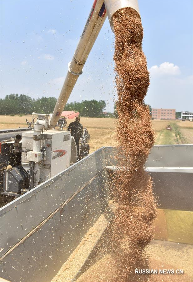 1 июня /Синьхуа/ -- В разных районах провинции Аньхой на востоке Китая началась уборка урожая пшеницы.