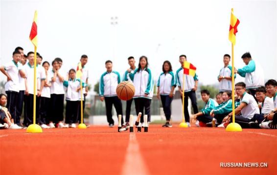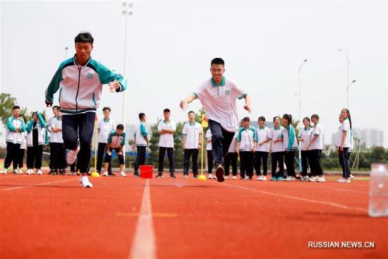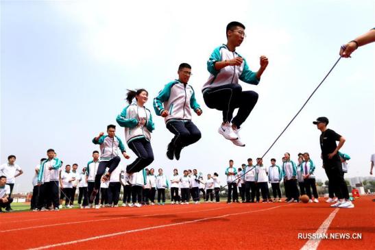 Циндао /пров. Шаньдун/, 14 июня /Синьхуа/ -- В преддверии общенациональных вступительных экзаменов в высшие учебные заведения "гаокао" экспериментальная школа "Тунцзи", расположенная в районе Цзимо города Циндао /провинция Шаньдун, Восточный Китай/, организовала для учеников третьих классов средней школы второй ступени разнообразные коллективные игры для снятия физического и психологического напряжения.