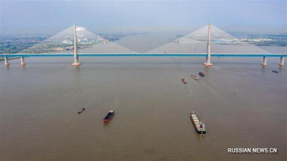 Чжанцзяган, 1 июля /Синьхуа/ -- В провинции Цзянсу /Восточный Китай/ сегодня был введен в эксплуатацию большой автомобильно-железнодорожный мост "Хусутун" через реку Янцзы. По этому мосту проходят сразу три транспортных канала -- скоростное шоссе, грузопассажирская железная дорога и высокоскоростная железная дорога.