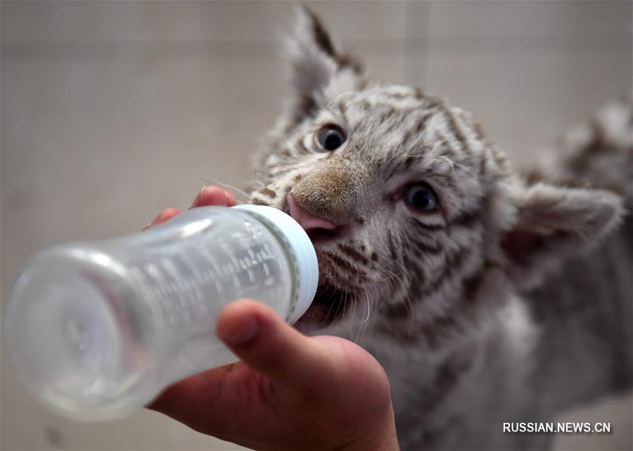 13 июля /Синьхуа/ -- Детенышу бенгальского тигра по кличке "Нюню", живущему в зоопарке Шицзячжуана /пров. Хэбэй, Северный Китай/ всего три месяца. Поскольку мама-тигрица из-за недостатка опыта не могла как следует ухаживать за малышом, заботу о тигренке сразу после рождения взяли на себя научные сотрудники зоопарка.