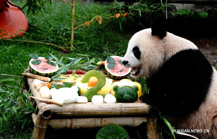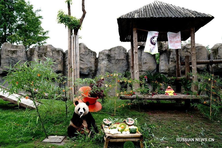 17 июля-- Панде по кличке Цици, живущей в Шанхайском парке дикой природы, сегодня исполнилось два года.