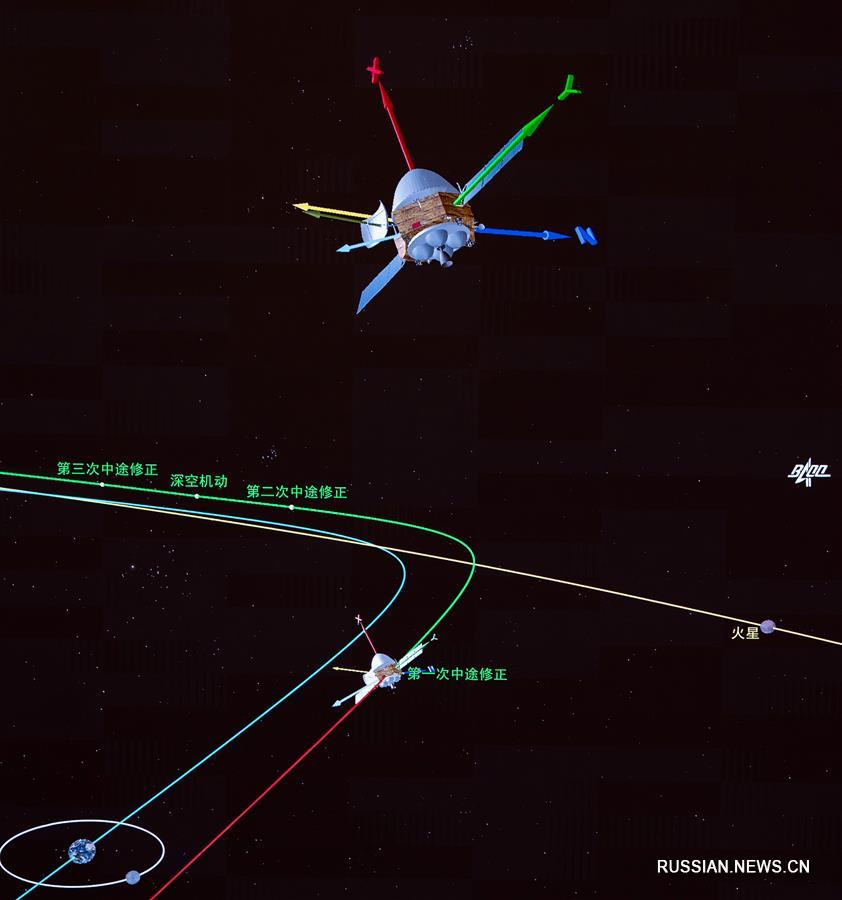 В воскресенье утром китайский марсианский зонд "Тяньвэнь-1" совершил свою первую коррекцию орбиты, сообщили в Государственном космическом управлении Китая. Коррекция орбиты зонда была проведена в 7 часов утра по пекинскому времени после того, как его двигатель 3000N находился в работе в течение 20 секунд. Космический аппарат продолжает двигаться к Марсу.
